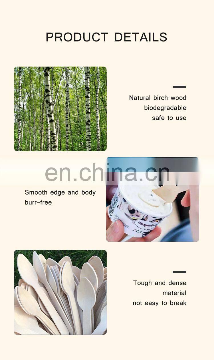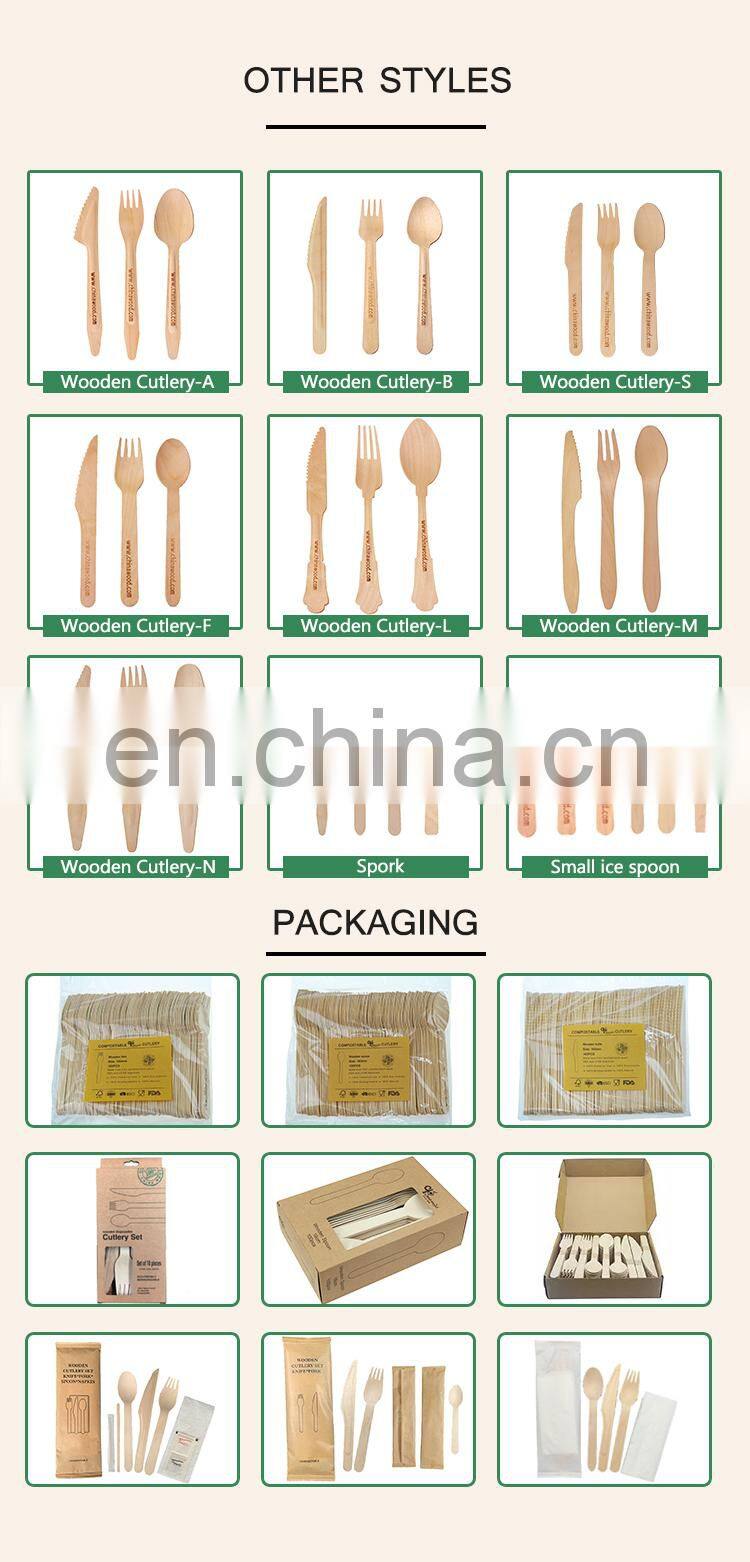 Yada Manufacturer Ecofriendly Cutlery 185mm Disposable Birch Dessert Wooden Knives Forks Spoons Degradable Tableware