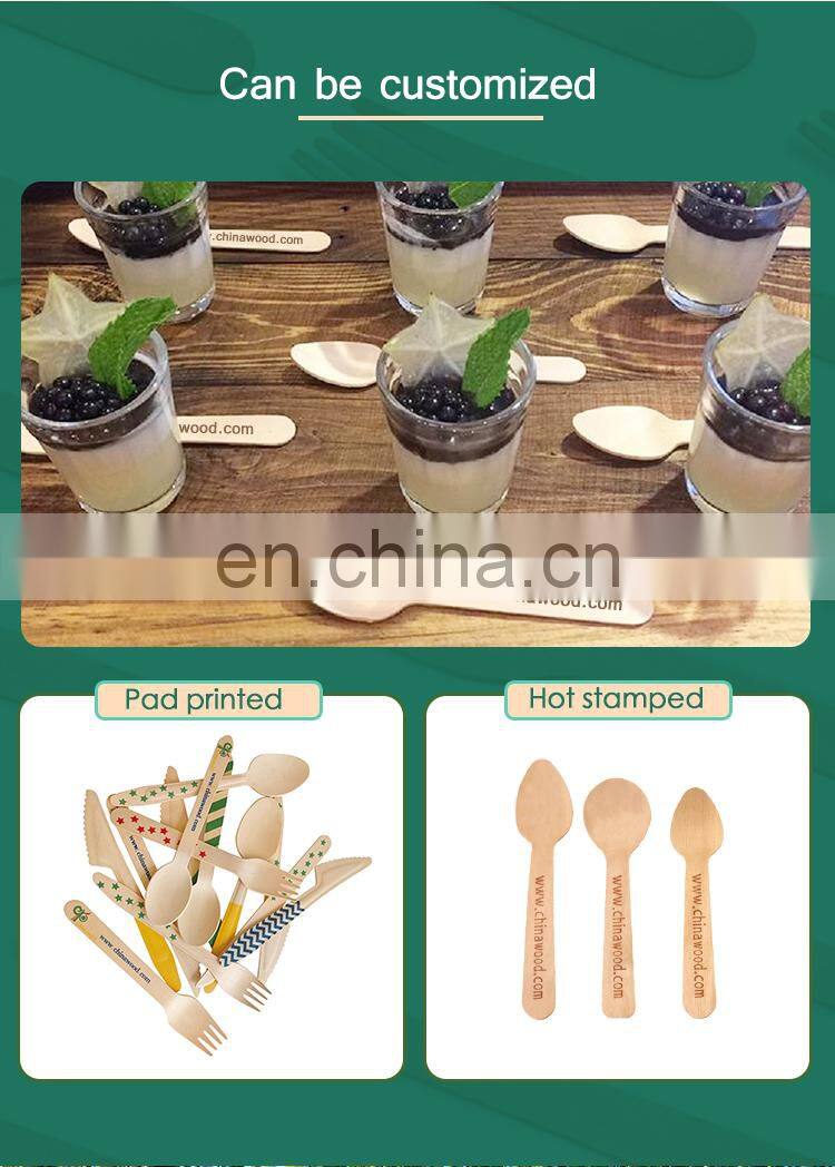 Yada Chinawood Biodegradable Disposable Food Birch Wood Individual Cutlery Set Package Knife Fork and Spoon Set