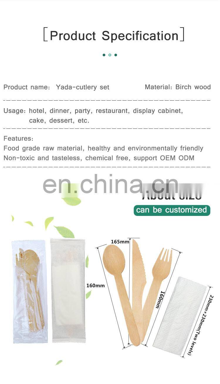 Yada Natural Disposable Wood Cutlery Restaurant Catering Tableware Utensils Knife Fork Spoon