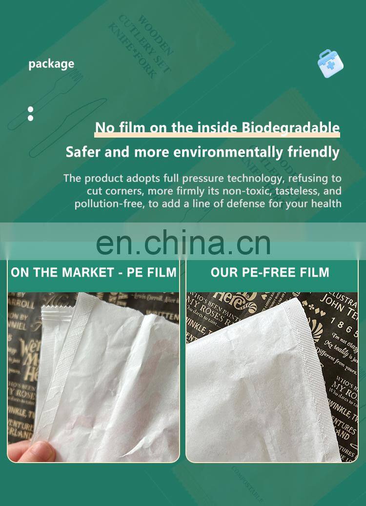 Yada Ecofriendly Wooden Cutlery Individually Paper Wrapped Wooden Knife Fork Spoon With Customized Logo