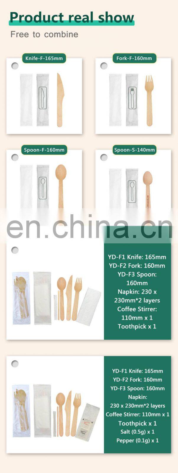 Yada Custom Printed High Quality Utensils 140mm Birch Disposable Spoon Fork Knife Wooden Cutlery Set