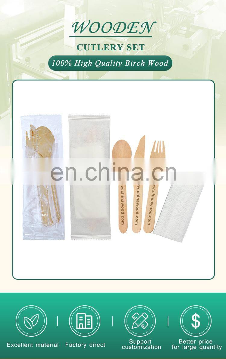 Hot Selling Chinese Disposable Wooden Cutlery Sets No Plastic Eco-friendly White Birch Wood Tableware Sets