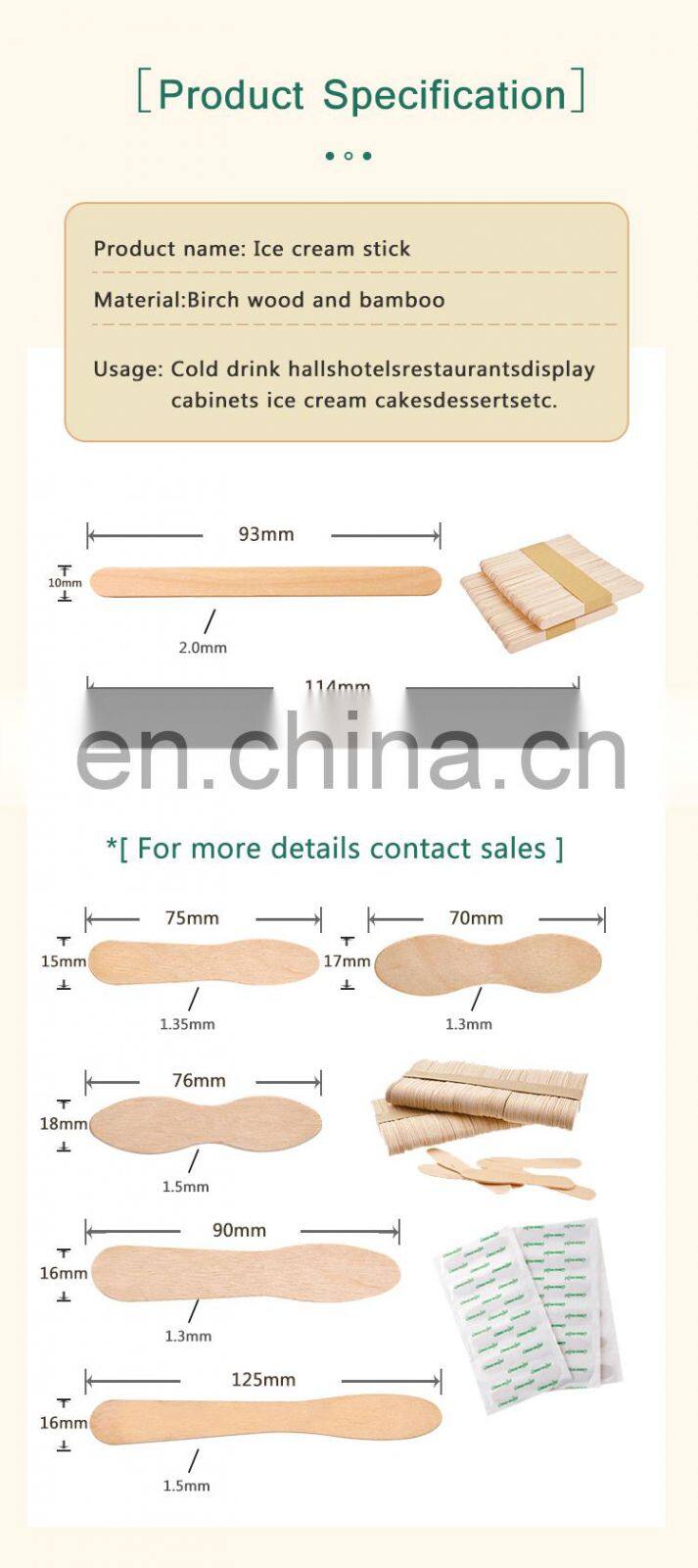 Europe Wholesale Disposable Custom Packaging Birch Wooden Ice Cream Stick