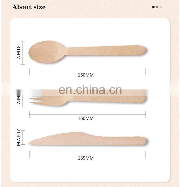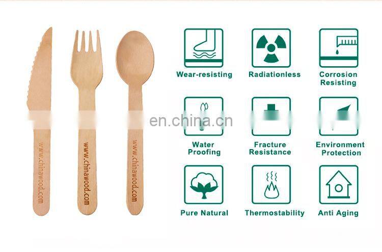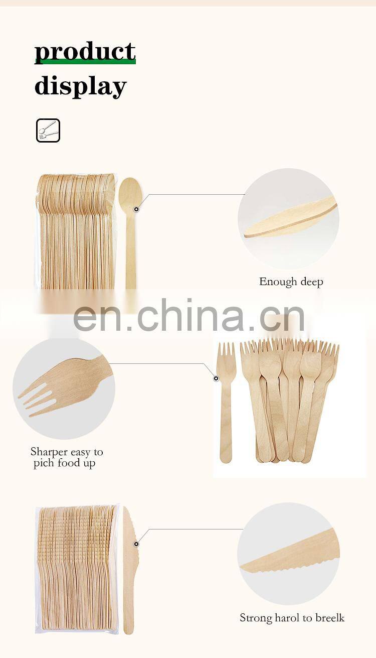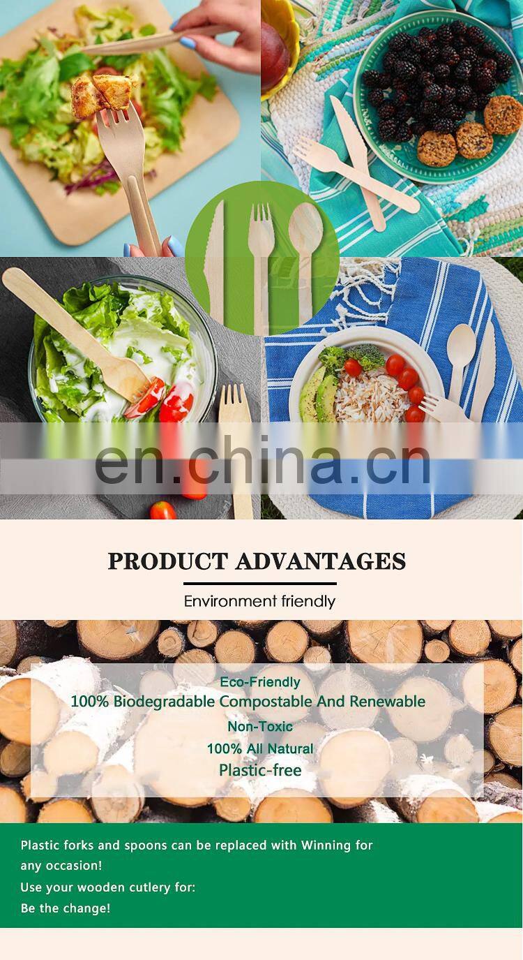 YADA China Wood Natural 100% Biodegradable 160MM Wooden Disposable Spoon Fork Wood Cutlery Kit Set
