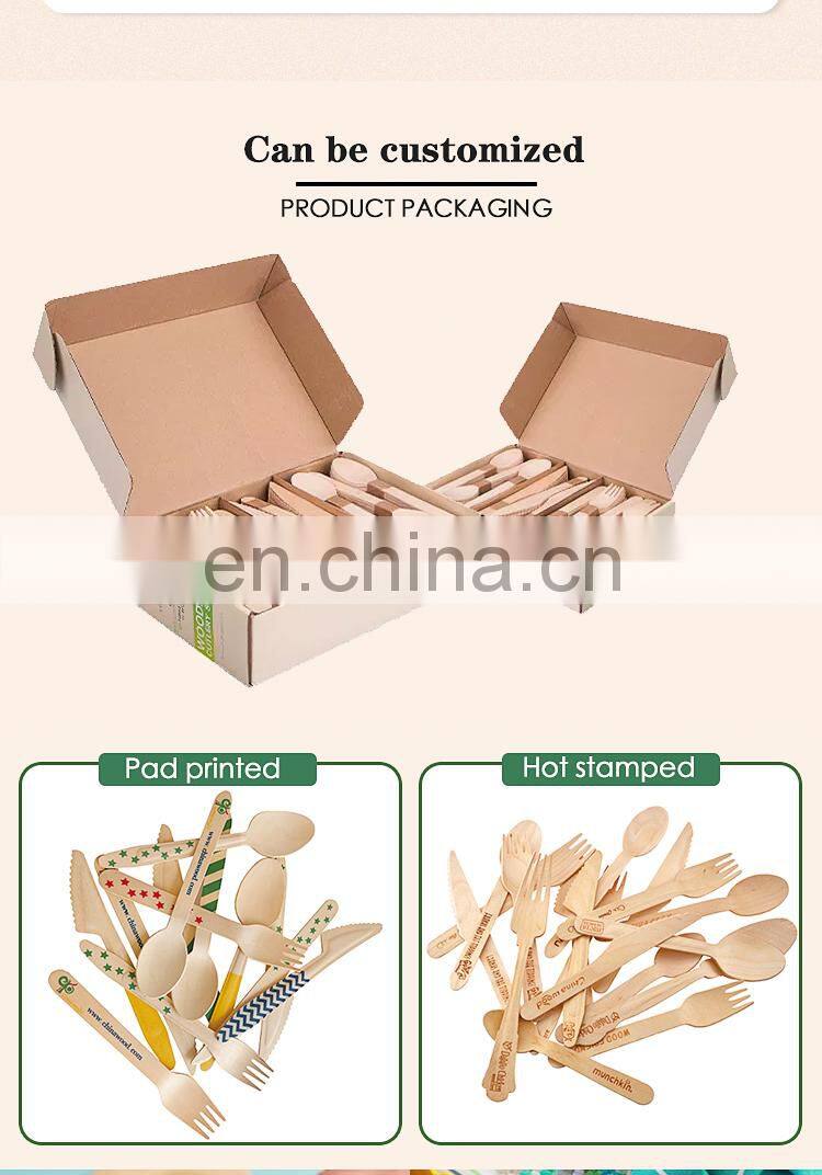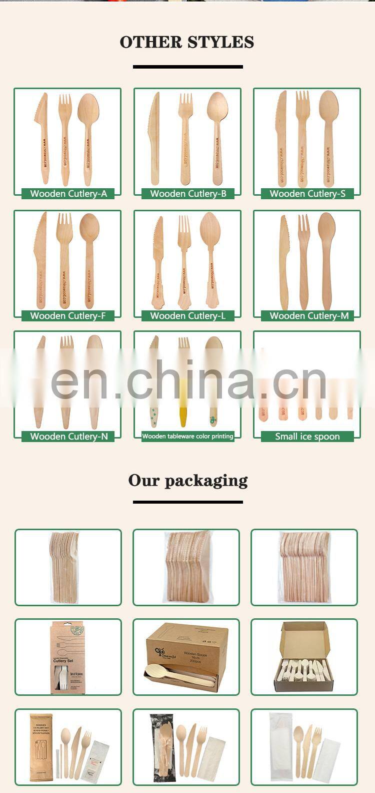 Yada New Type Eco Friendly Fork Knife Spoon Disposable Wooden Cutlery Set printing Biodegradable