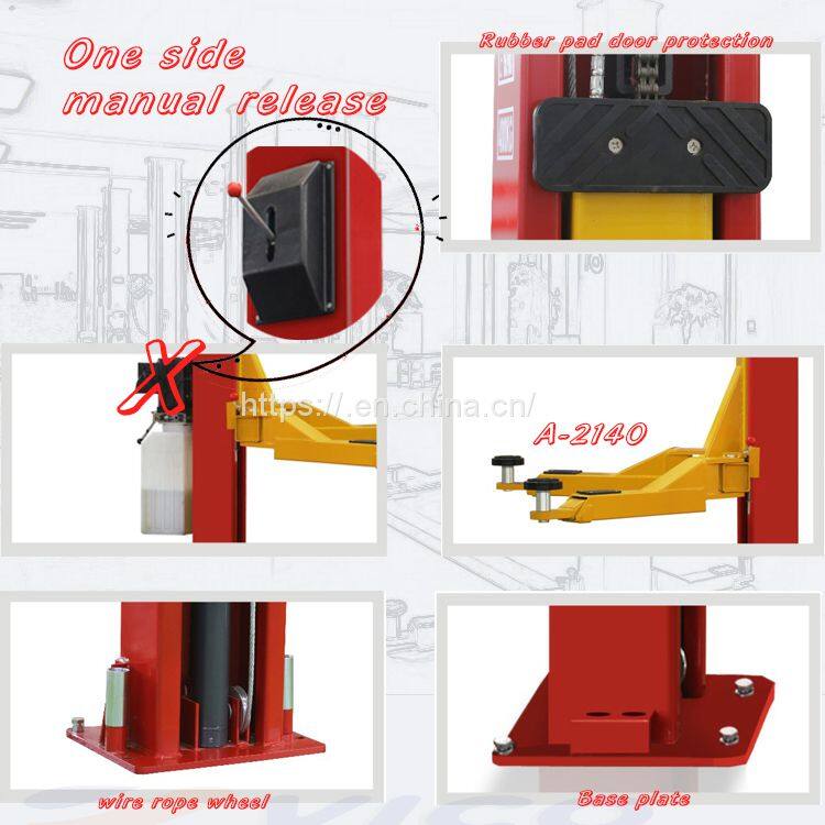 4 Ton One Side Release Two Post Hydraulic Car Lift With CE Certificate V-LZW-A-2140