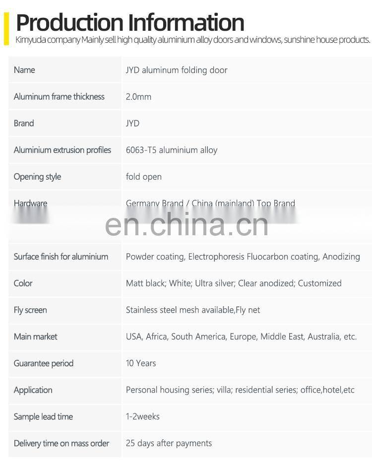 JYD Entrance Multi Concertina Fold Door for Patio