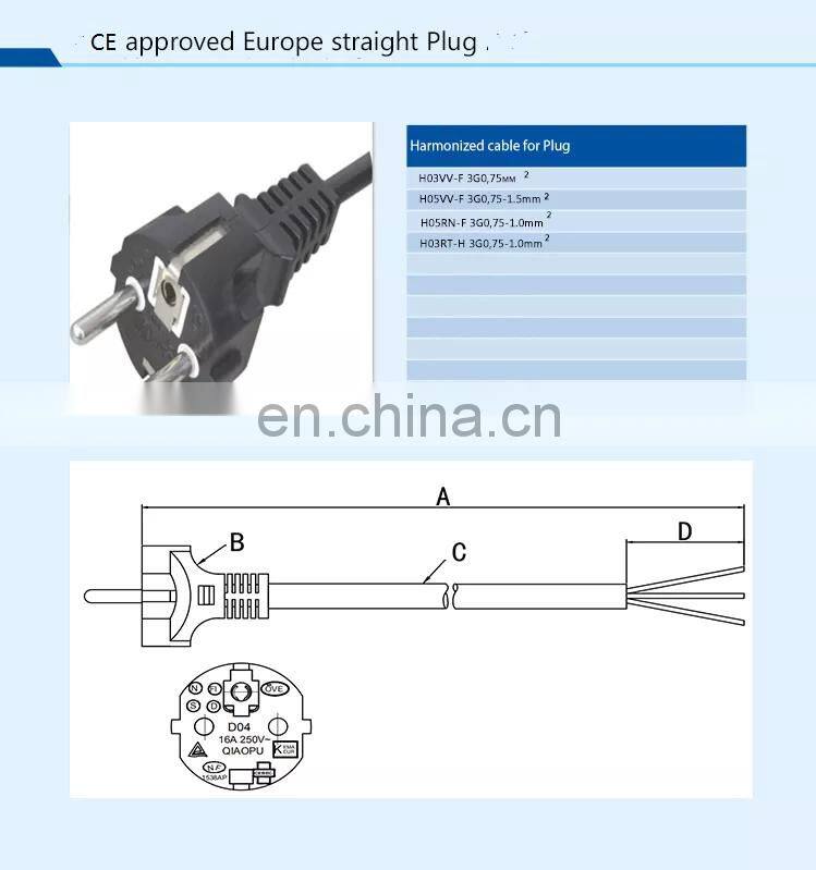 Product Name | AC Power Cord euro 3 prongs schuko straight plug power cord open-end 16A |