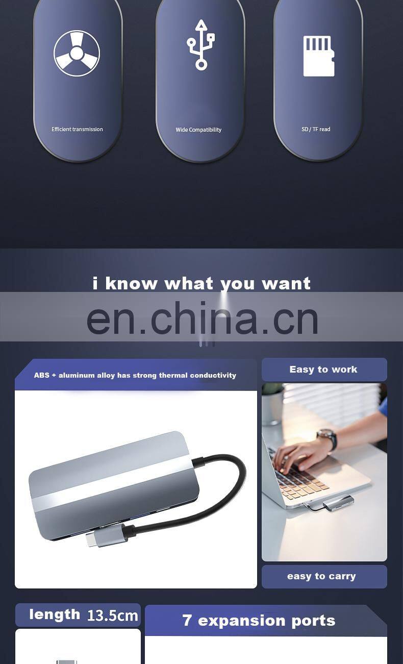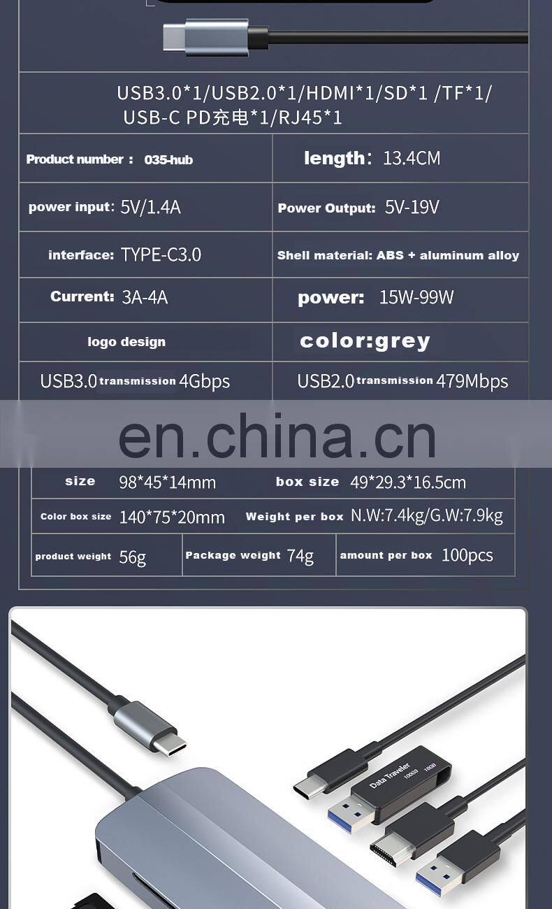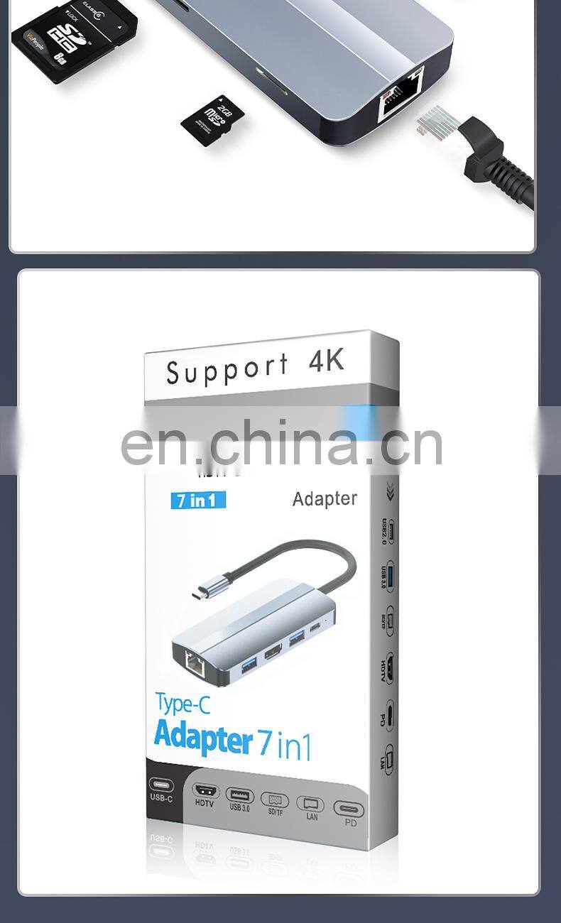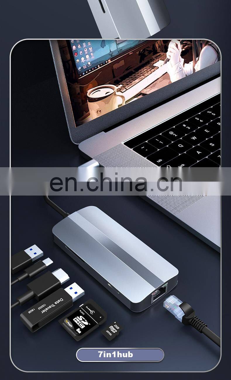 7 IN 1 docking station USB3.0+USB2.0*2+HDTV+USB-C PD charging +100mpbs ethernet port usb hub 3.0 splitter 7 port usb data hub