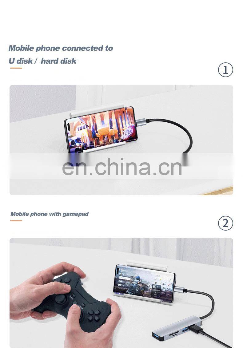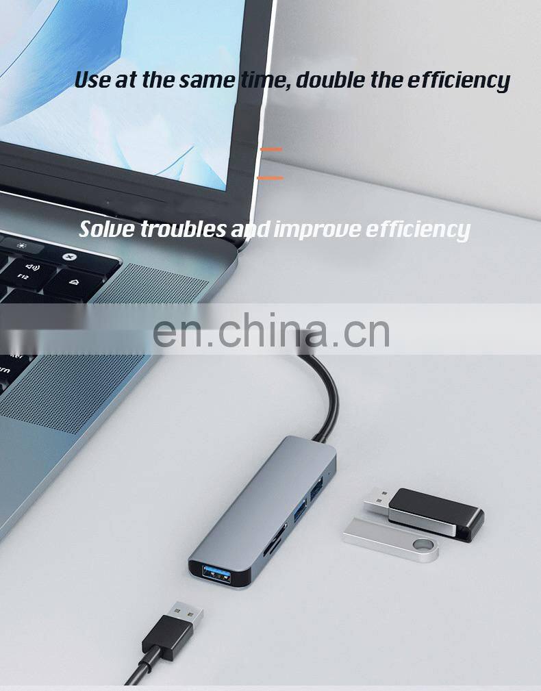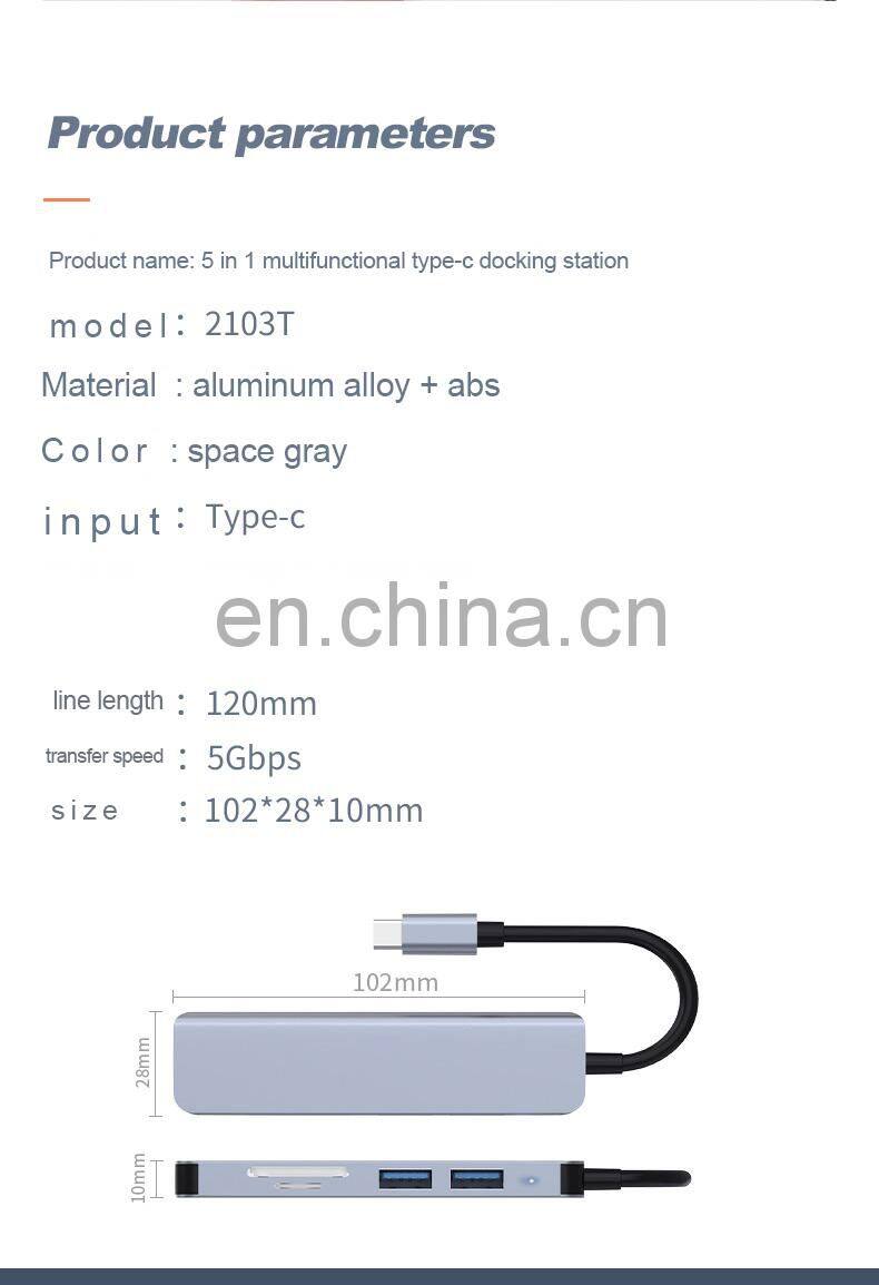 Multifunction 5 ports usb hub Type C to USB3.0+ USB2.0*2+TF +SD 4K 60HZ type c hub adapter laptop docking station