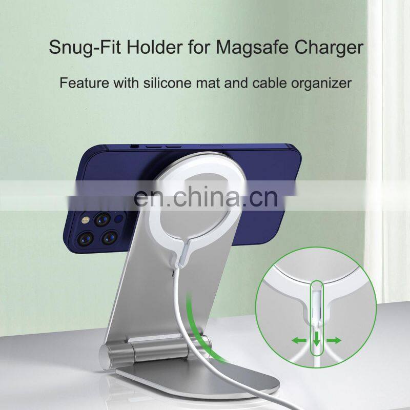 Foldable Stand for Mag-safe Charger Holder,Adjustable Desktop charging mount bracket Phone holder for iPh 12 wireless charger