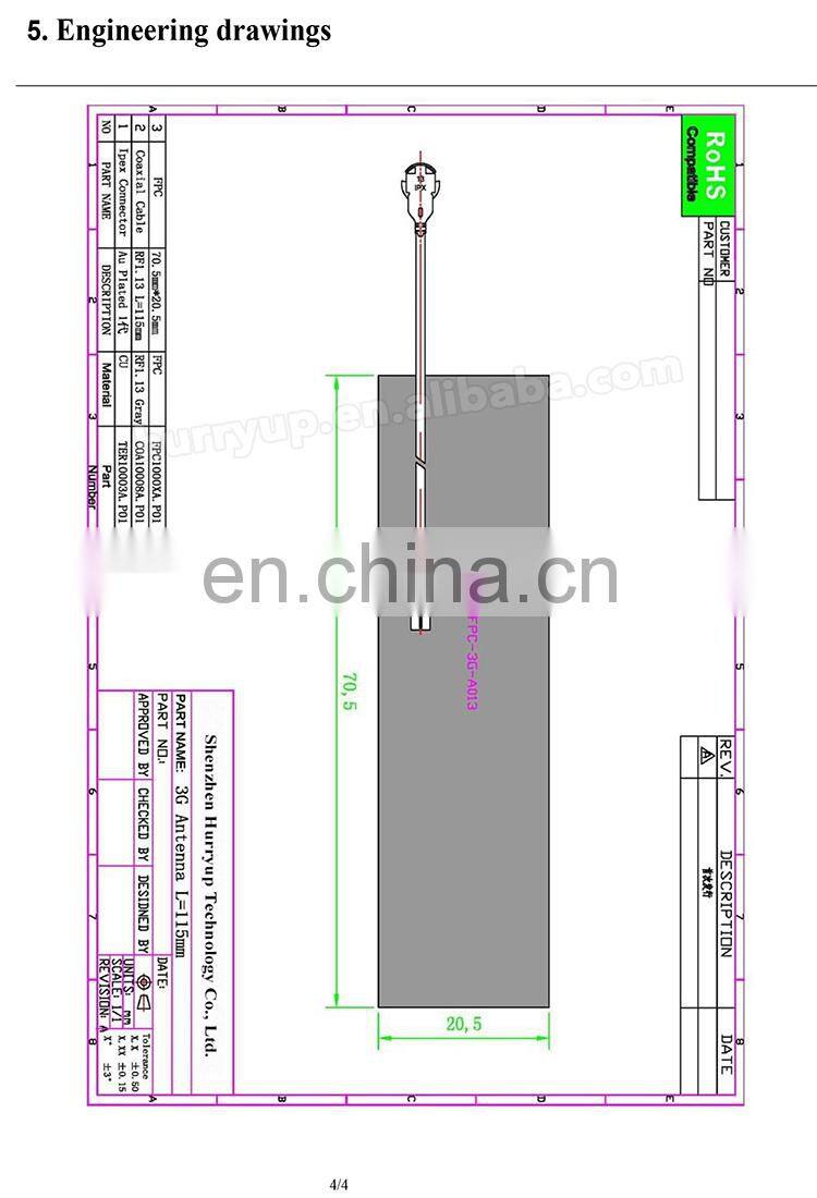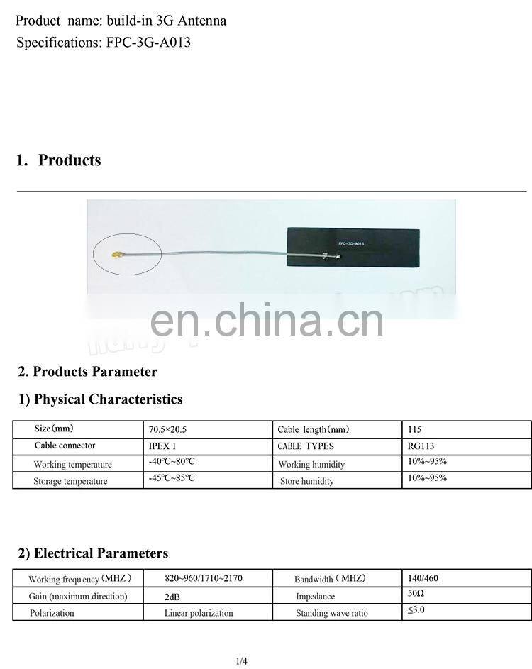 Internal Flexible PCB FPC 3G Mobile Antenna With 1.13 RF Cable