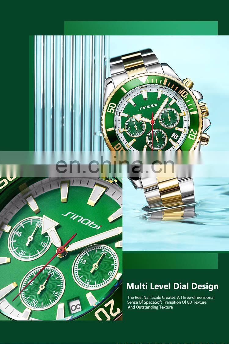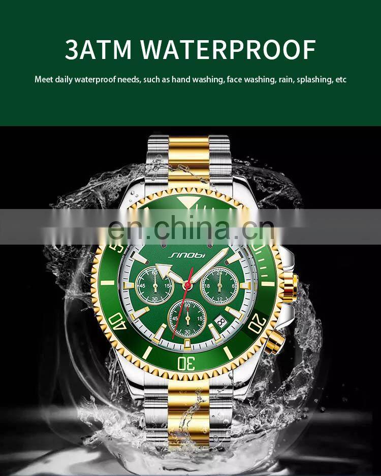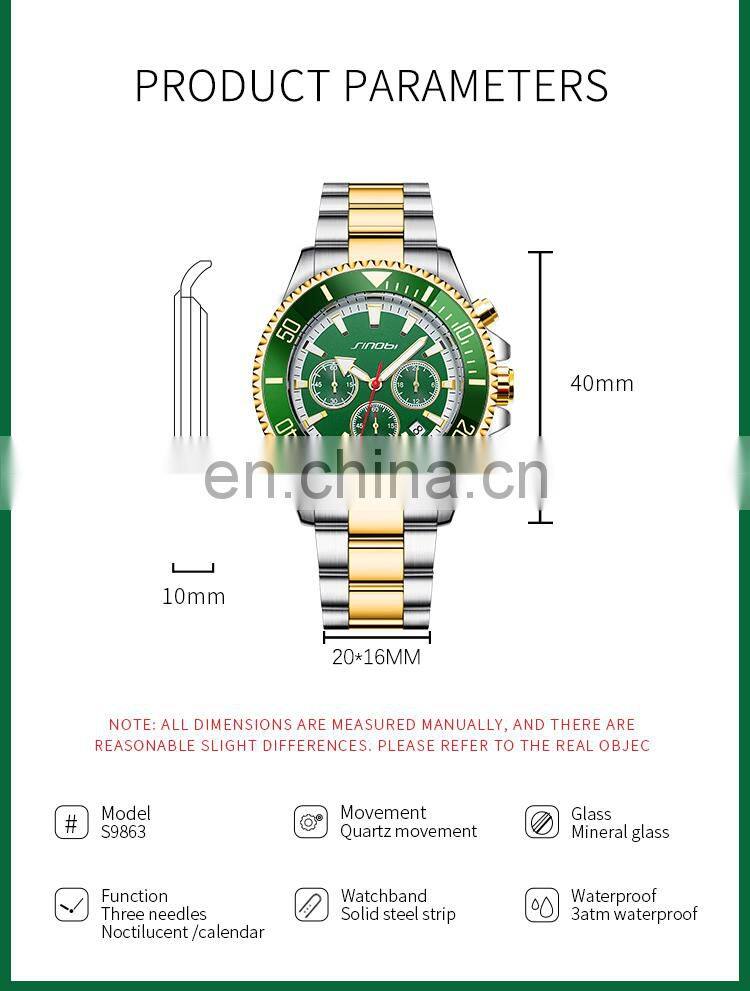 Sinobi Stainless Steel Band S9862G Calendar Watch Water Proof Watch Quartz Men High Quality Green Dial Man Watch Luxury