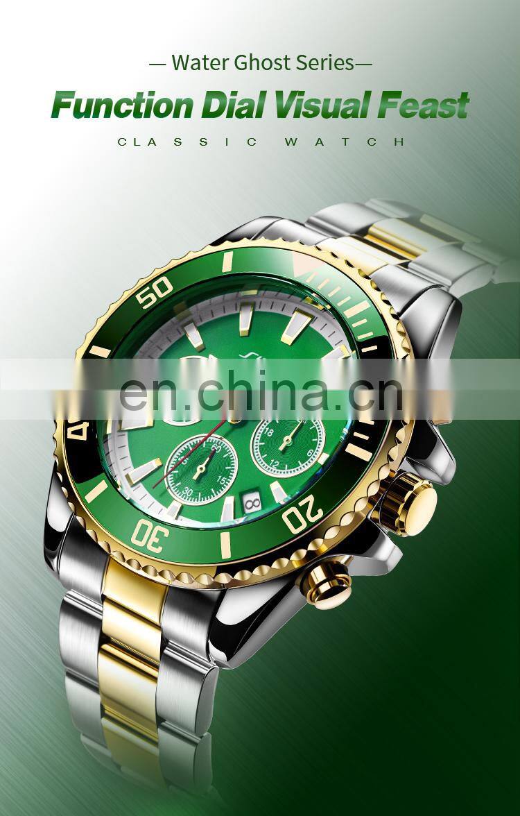 Sinobi S9721G Mens Luxury Watch Stainless Steel Strap Sport Waterproof Green Water Ghost Watch Quartz Men's Watches