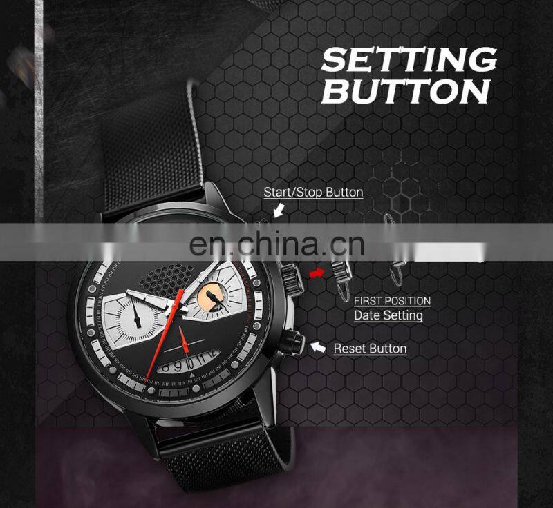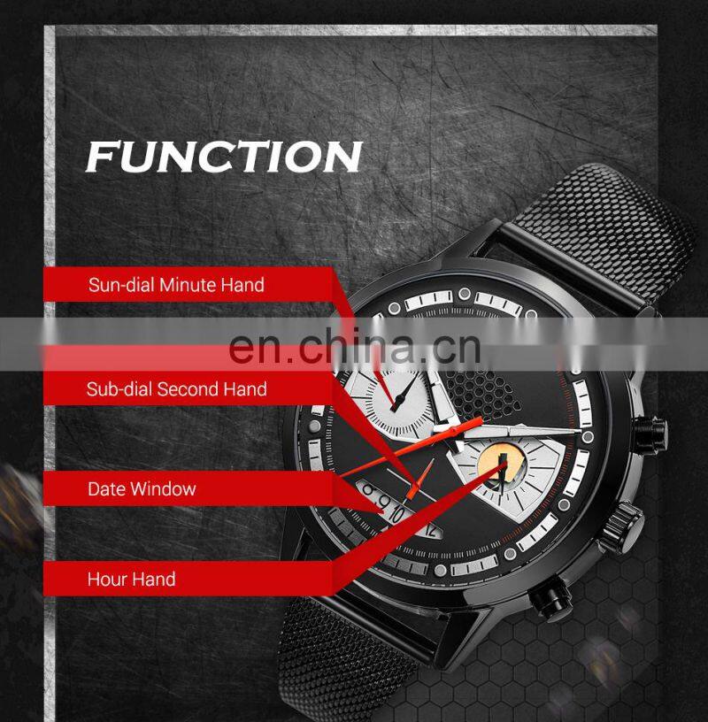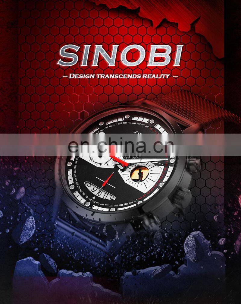 SINOBI S9829G Creative Men's Watch Unique Design Calendar Clock Sports Chronograph Quartz Wristwatches Reloj Hombre Gift for Men