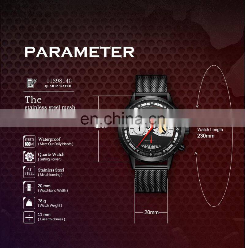 Sinobi Fashion Mens Watches Brand Luxury Quartz S9862G Montre OrIginal Pour Homme Mens Luxury Stainless Steel Watch