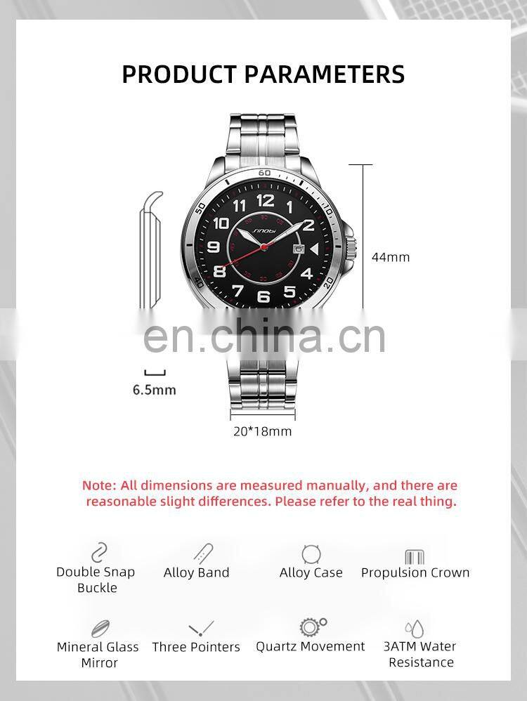 SINOBI Mens Watch S9655G Luminous Hands With Auto Date Wristwatch Men Hand Watch OEM Men Style Watches