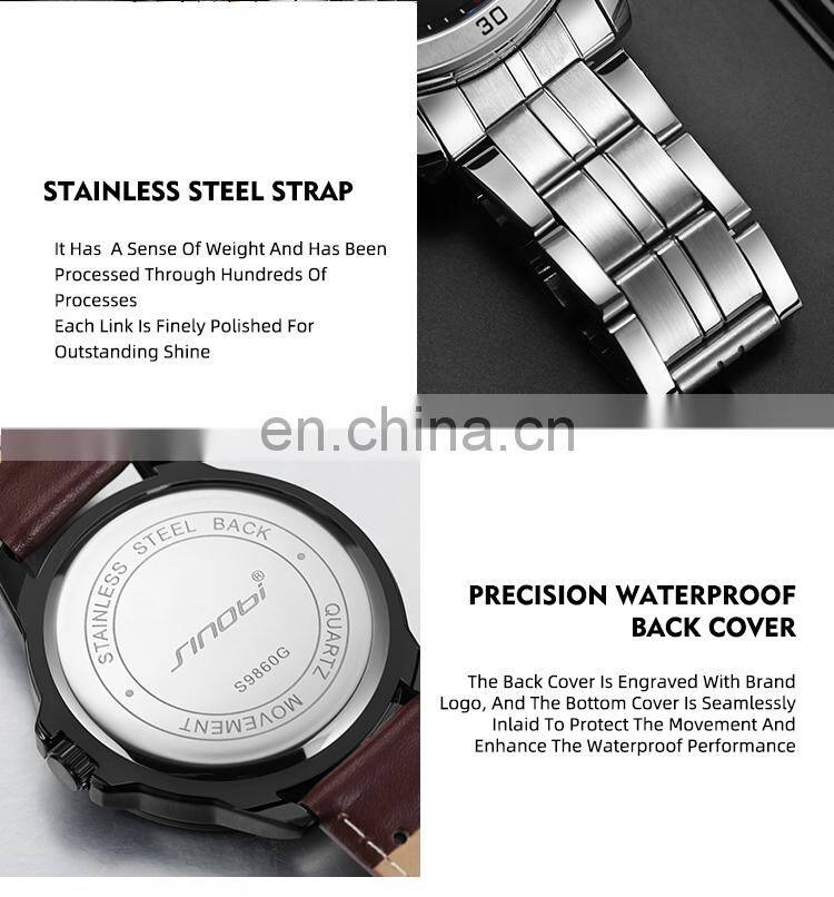 Sinobi Mens Watches in Wristwatches Luxury S9860G Wholesale Customize Watch Relogio Masculino Quartz Luxury Leather Watch Mens
