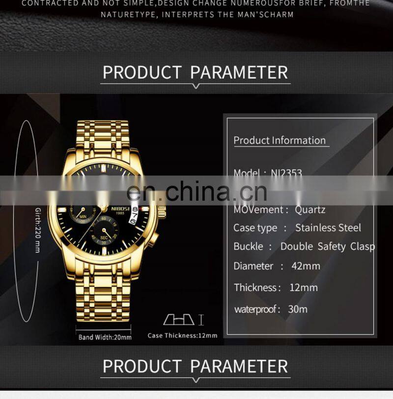 NIBOSI Gold Watch Mens Watches Top Brand Luxury Sport Quartz Clock Waterproof Military Wrist Watch 2351 Relogio Masculino Saat