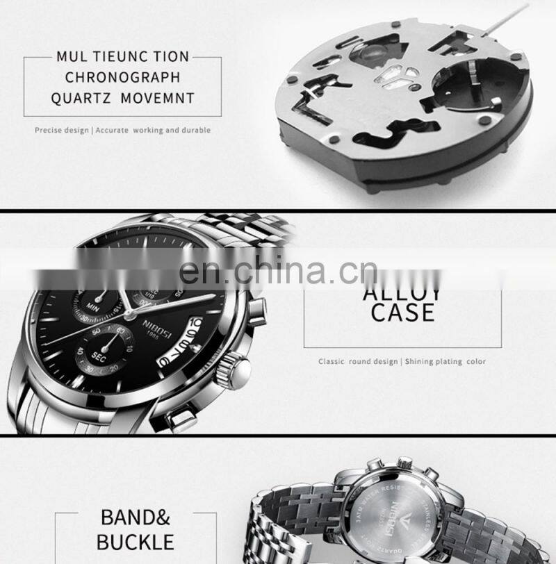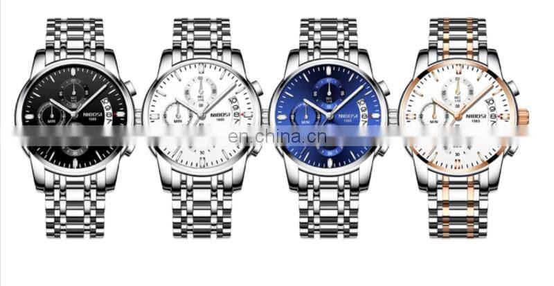 Luxury Quartz Watches Waterproof Quartz Watches Top Quality Stainless Steel Hot Sales Custom Men 2020 NIBOSI Analog Two Years