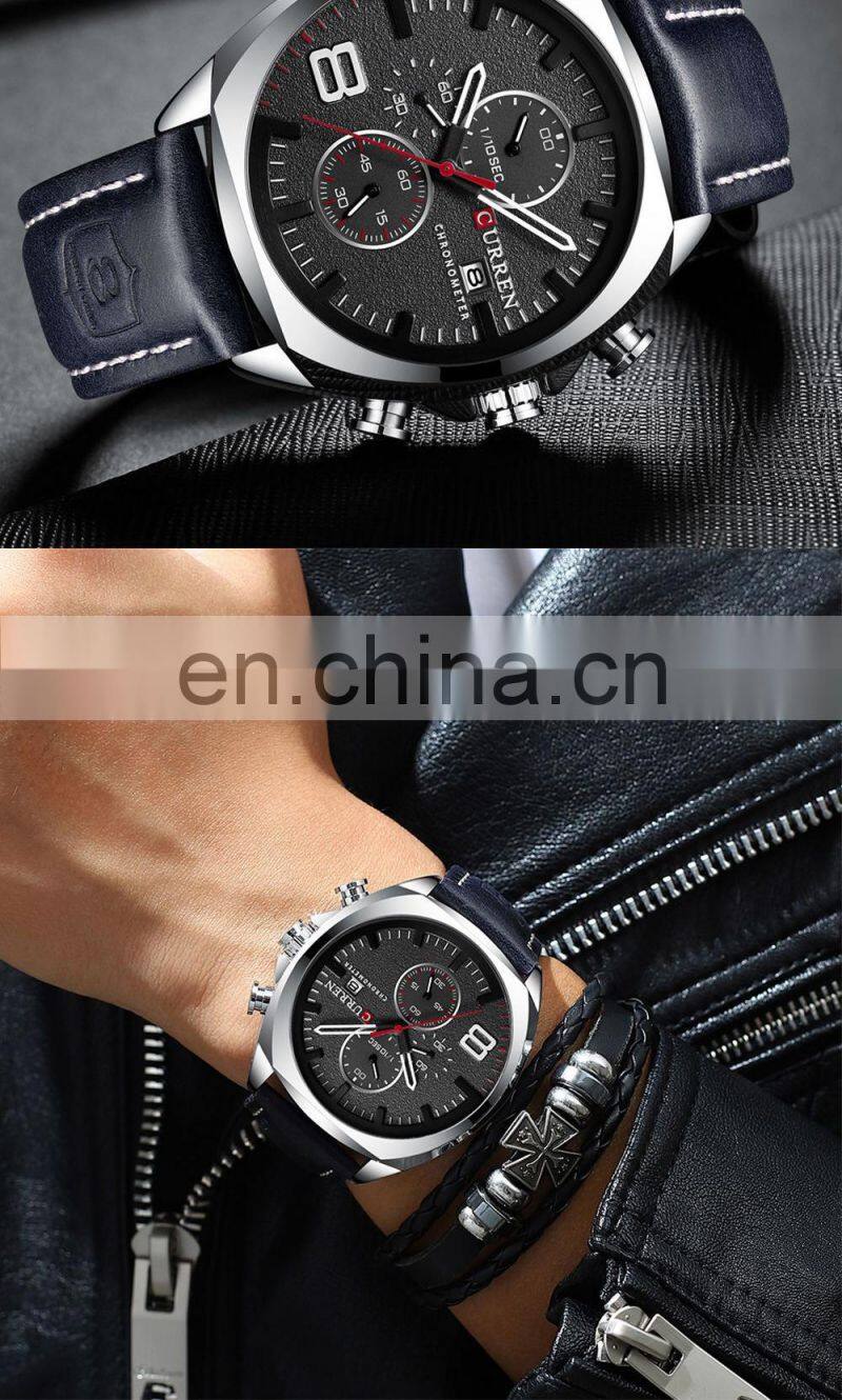 CURREN Leather Strap Calendar Man Watch Quartz Movement Man Watch Business Man Watch