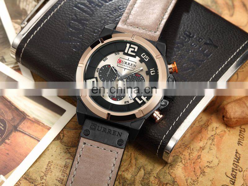 CURREN Leather Strap Calendar Man Watch Quartz Movement Man Watch Business Man Watch