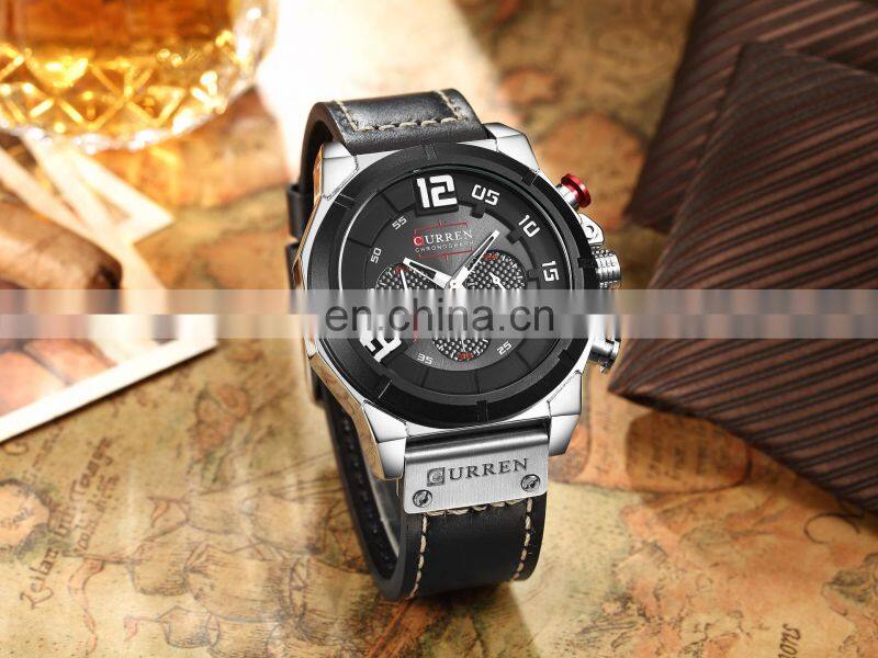 Branded High Quality CURREN 8310 Relogio Leather Casual Calendar Quartz Men's Watch Made in China