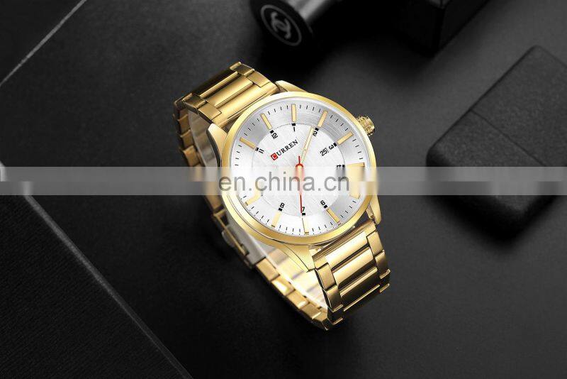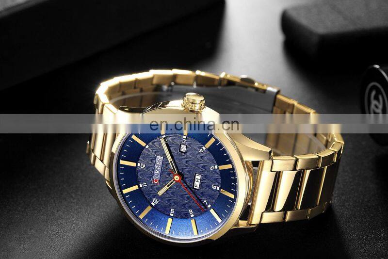 CURREN Brand Stainless Steel Waterproof Quartz Watch Business Calendar Men's Fashion Gold Watch