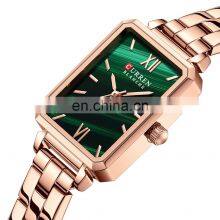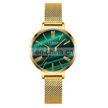 CURREN Ladies Luxury Brand Simple Quartz Stainless Steel Watch Classic Elegant Gold Green Lady's Charm Watch on Wrist
