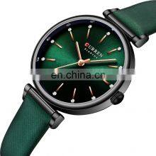 2021 CURREN 9081 Brand Fashion Rhinestone Dial Leather Bracelet Ladies Watch Retro Quartz Small Green Charming Watch