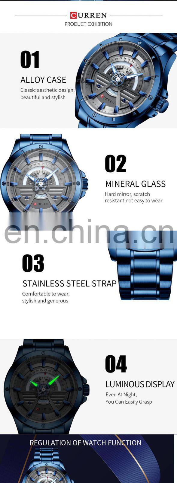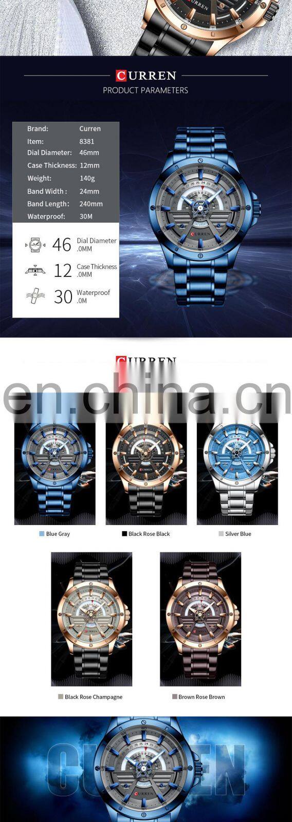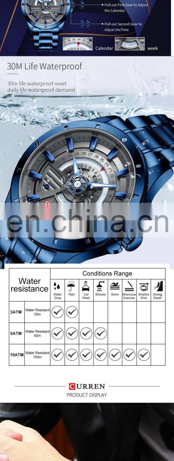 CURREN Super Quartz Watches For Men Hot Sale Stainless Steel Band Business Men's Watches Big Dial Luxury Wristwatches Relojes