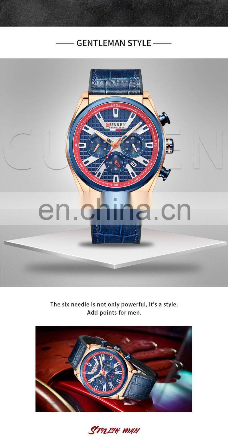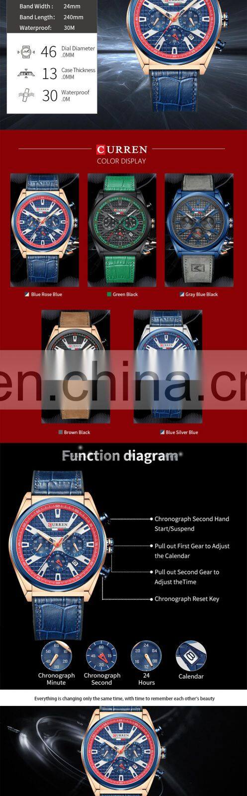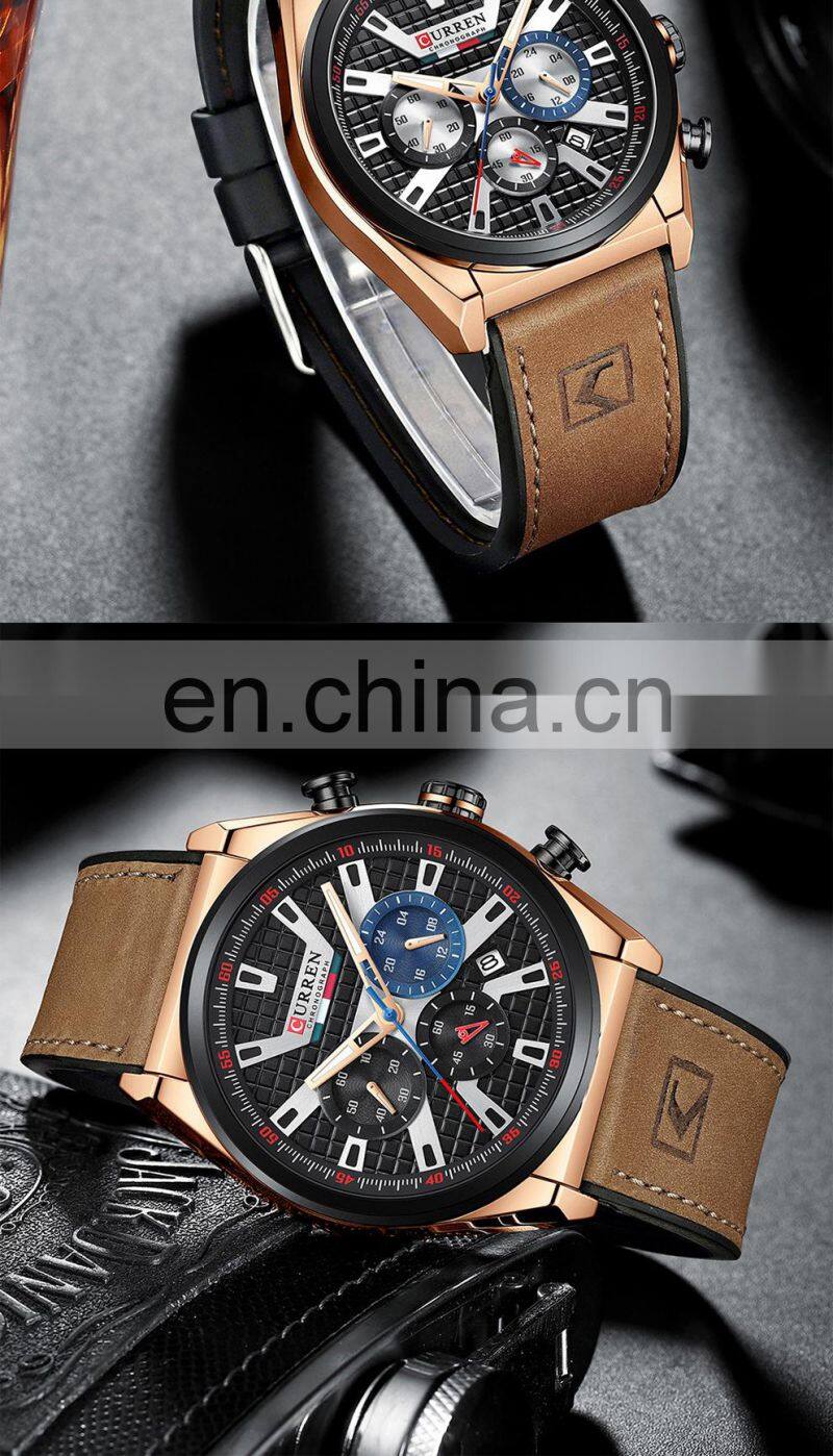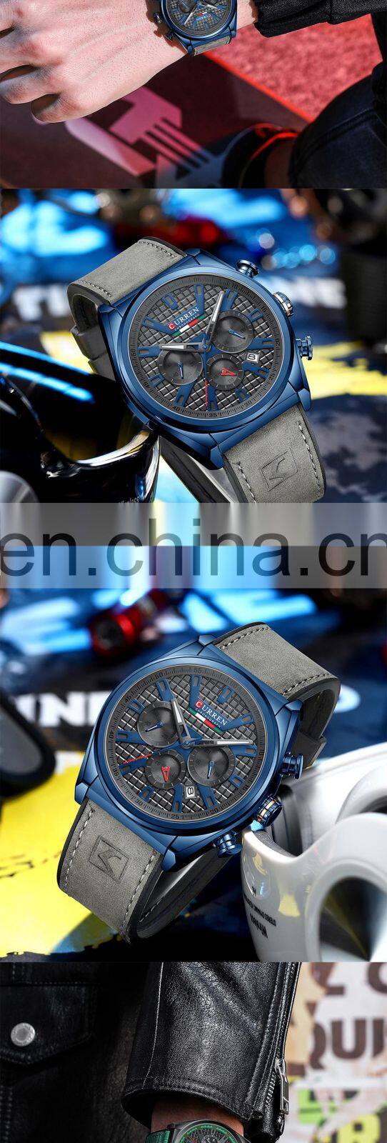 CURREN 8314 Waterproof Sport Montre Homme Chronograph Quartz Military Genuine Leather Men Wrist Watches