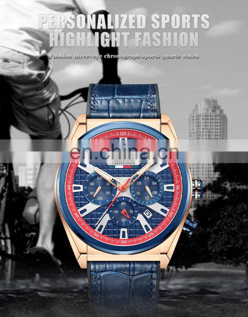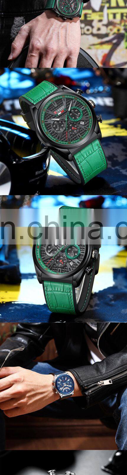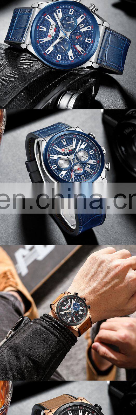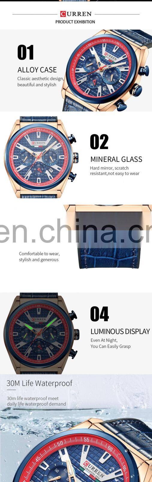 CURREN 8314 Waterproof Sport Montre Homme Chronograph Quartz Military Genuine Leather Men Wrist Watches