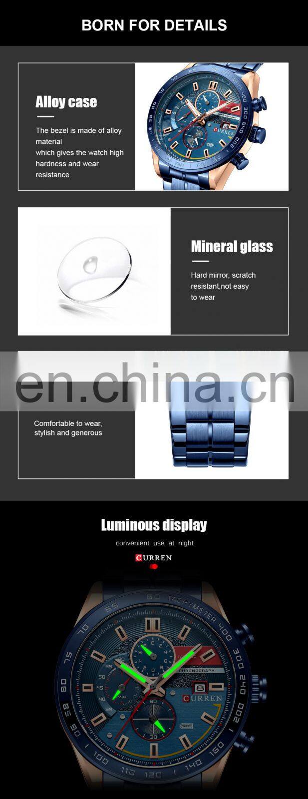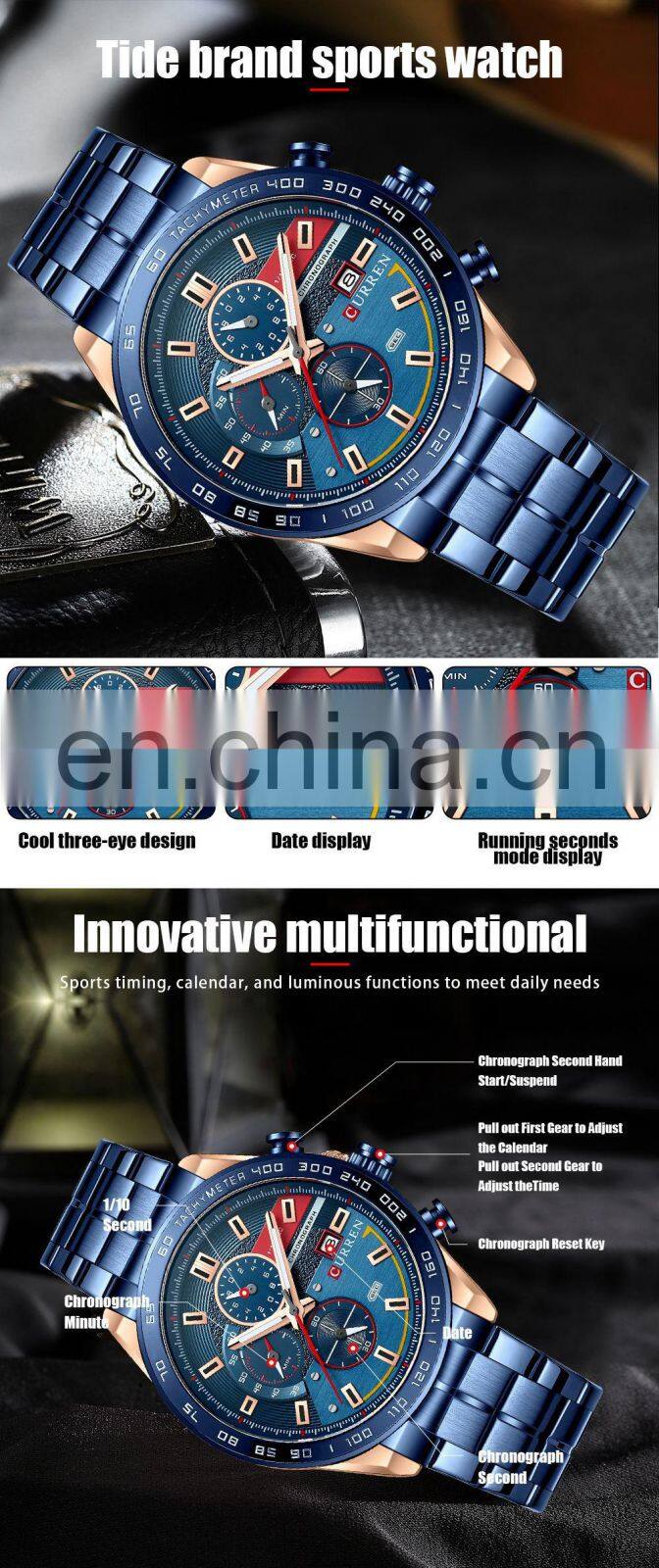 Curren 8421 New Fashion Quartz Watch Man 2022 Innovative Calendar Waterproof Silicon Band Green Stop Watches Relogio Masculino