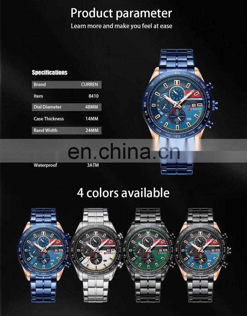 Home > Products > CURREN > Curren 8410 New Fashion Quartz Watch Man 2022 Innovative Calendar Waterproof Silicon Band Green Stop Watches Relogio Masculino
