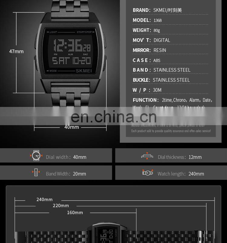 skmei 1368 digital watch instrctions manual stainless steel band 3atm water resist watch  | ||||||||