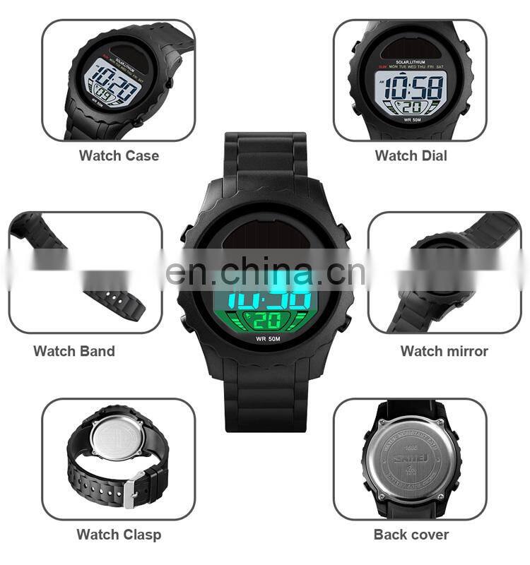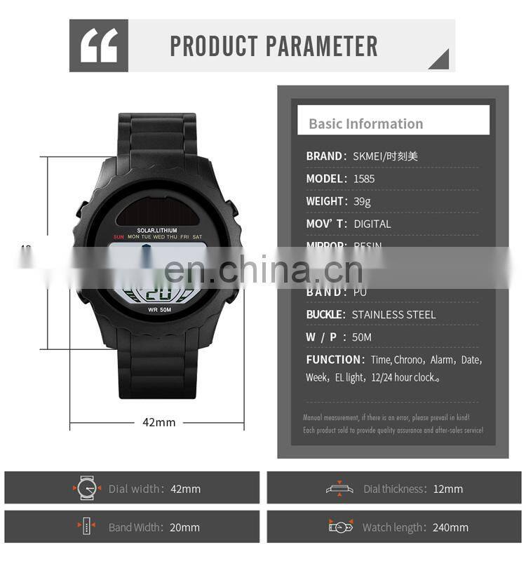 Original Factory Skmei 1585 Solar Digital Watch Sport Wristwatch Men Led Backlight Waterproof 5ATM