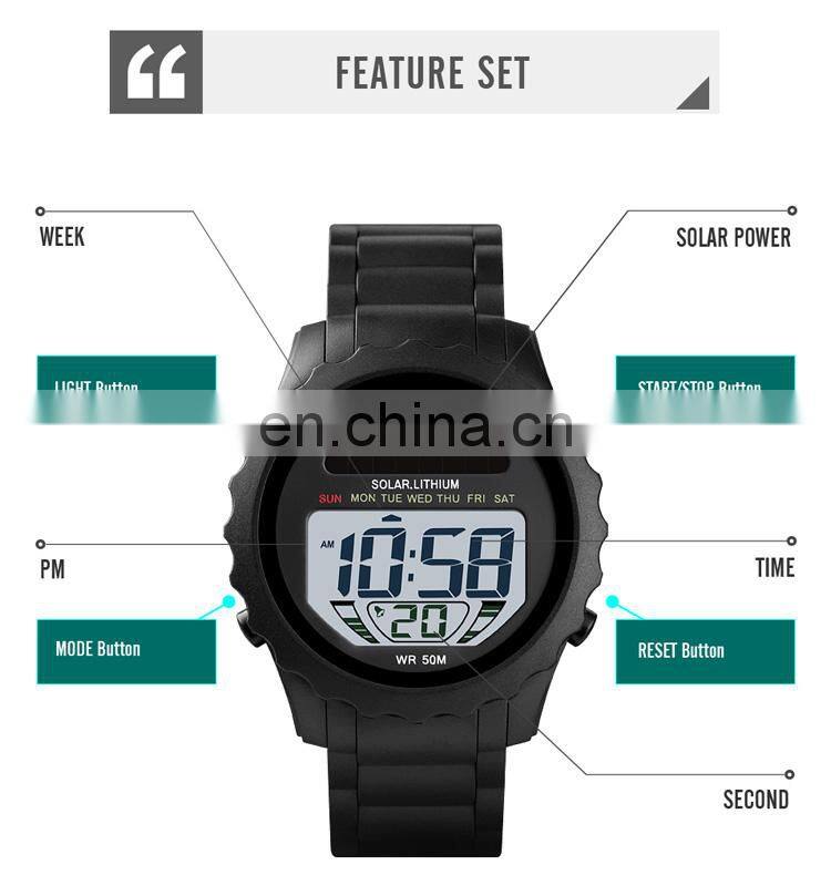 Home > Products > Digital Watch > Original Factory Skmei 1585 Solar Digital Watch Sport Wristwatch Men Led Backlight Waterproof 5ATM