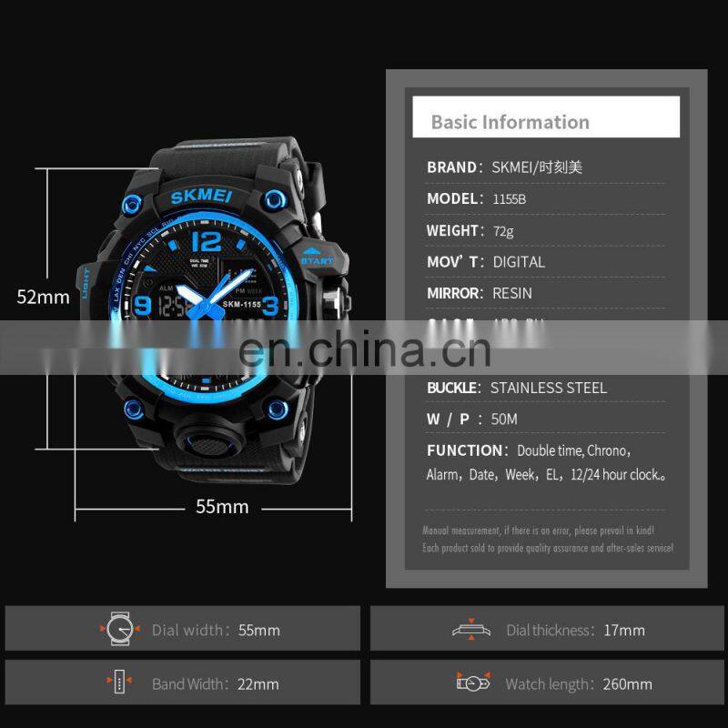 Home > Products > Digital Watch > Top10 Watch Brands Skmei 1155B Hot Selling Relojes Hombre 50m Waterproof Sports Digital Wristwatch for Men