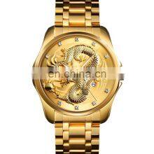 China Wholesale Skmei 9193 Stainless Steel Back Quartz Watches Golden Dragon Watch