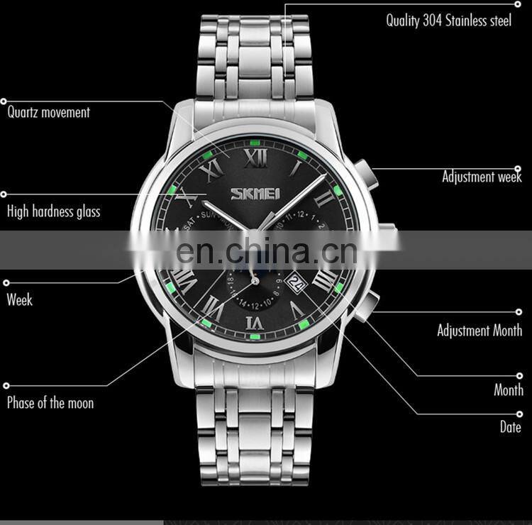 Skmei 9069 Chinese Wholesale Logo Custom 3 Atm Water Resistant Stainless Steel Watches