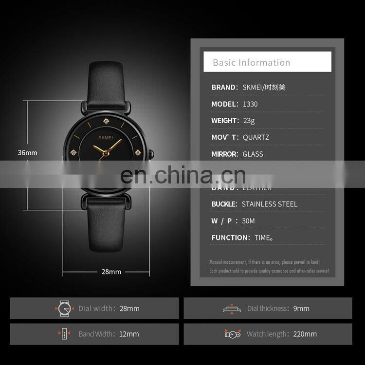 | Skmei 1330 elegant fashion japan movement stainless steel leather ladies fancy quartz watch | ||||||||