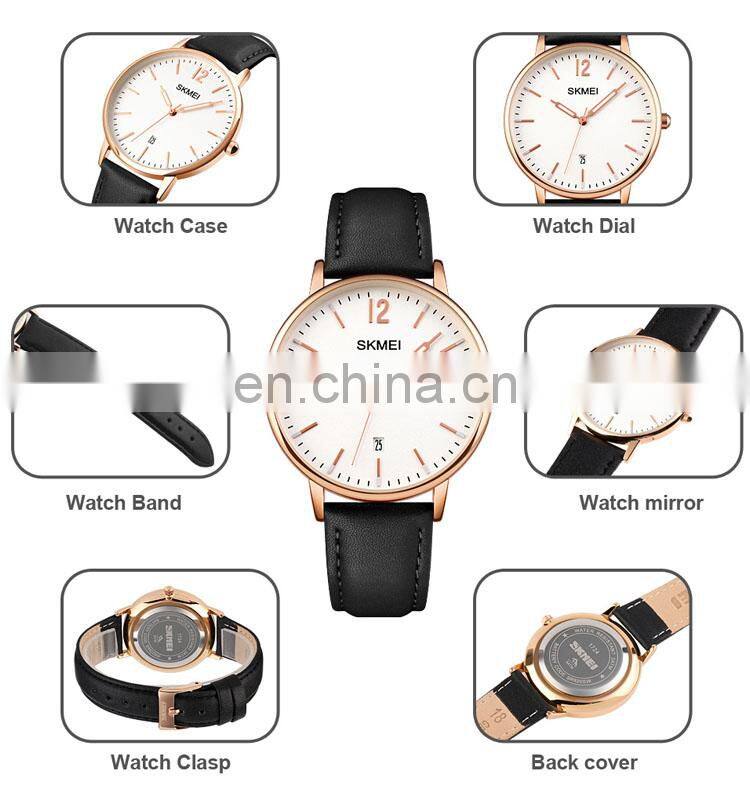 Wholesale Wristwatch Brand Skmei 1274 Waterproof Stainless Steel Back Genuine Leather Men Quartz Watch Imported From China