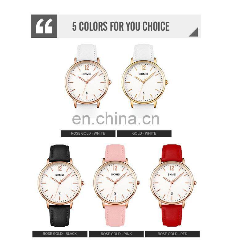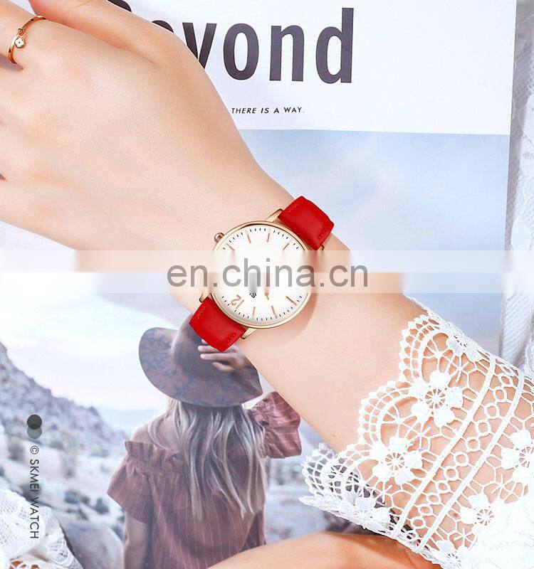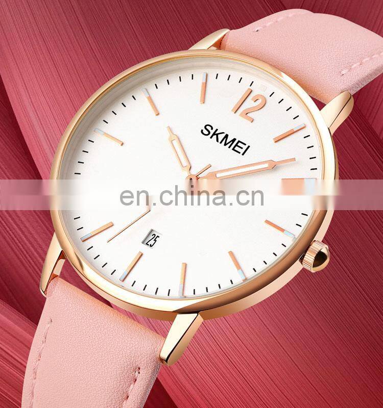 New Arrival Skmei 1724 Women Quartz Wristwatch for Girl Watch Fashion Leather Pink