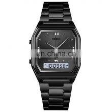 Fashion Luxury Quartz Wristwatch Skmei 1392 Top Selling 3ATM Waterproof Stainless Steel Square Dial Dual Time Watches