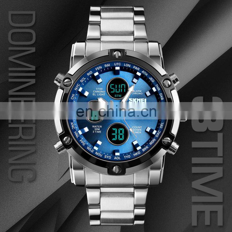 Time Zone Watch Skmei 9235 Design Your Own Wrist Watch Heavy Stainless Steel Best Selling Wristwatch for Big Men