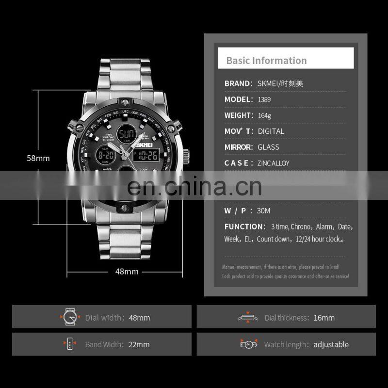 Skmei 1389 hot selling japan movt watches stainless steel digital men's watch | ||||||||