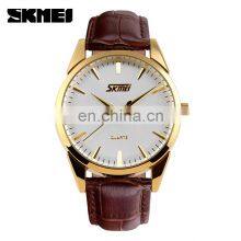 9073 Gold Skmei Quartz Watch Leather Custom Logo Wristwatch Wholesaler Elegante Luxury 30m Waterproof Business Watch for Men