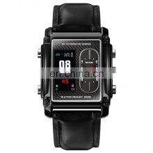 Multifunction Jam Tangan Pria Two Time Zone Square Watch Skmei 1802 Newest Top Quality Trendy Leather Strap Men Wristwatch