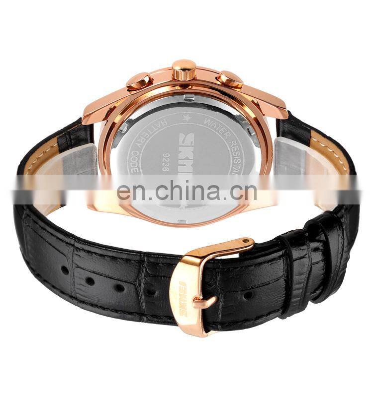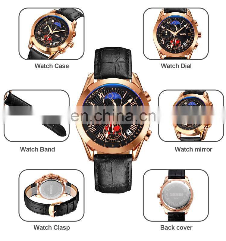 Luxury Genuine Black Leather Men Wristwatch Skmei 9261 Support OEM Custom Logo Top Quality Business Men Quartz Watch